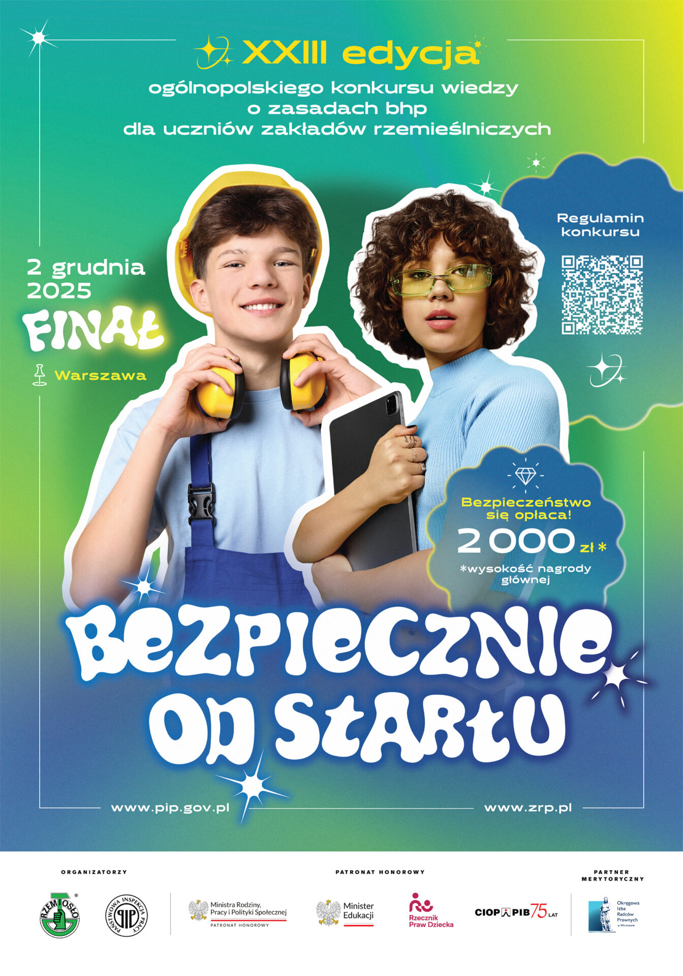 Uprzejmie informujemy, że w tym roku po raz dwudziesty trzeci organizowany jest Ogólnopolski Konkursu wiedzy o zasadach bezpieczeństwa i higieny pracy dla uczniów z zakładów rzemieślniczych „BEZPIECZNIE OD STARTU”.